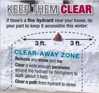 If there is a fire hydrant near your home or on your street, please help keep it accessible during the forecasted storm. Thank you for your cooperation and continued support.
