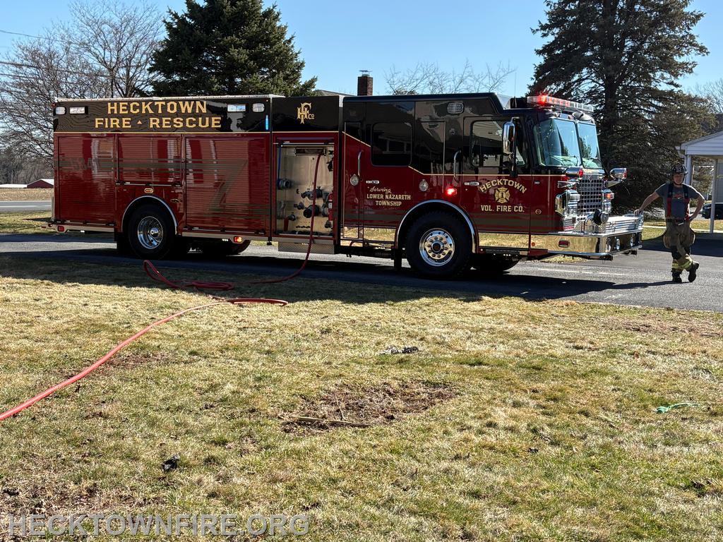At 14:54 hours, F53 and F50 (Vigilance Hose Company) were dispatched to a brush fire in the backyard of 471 Nazareth Pike. 5352 arrived on scene and smoke was visible in the backyard. The 53 Command was established, and the response was held to one engine from F53. 5341 arrived, and the crew deployed the red line to extinguish the fire.